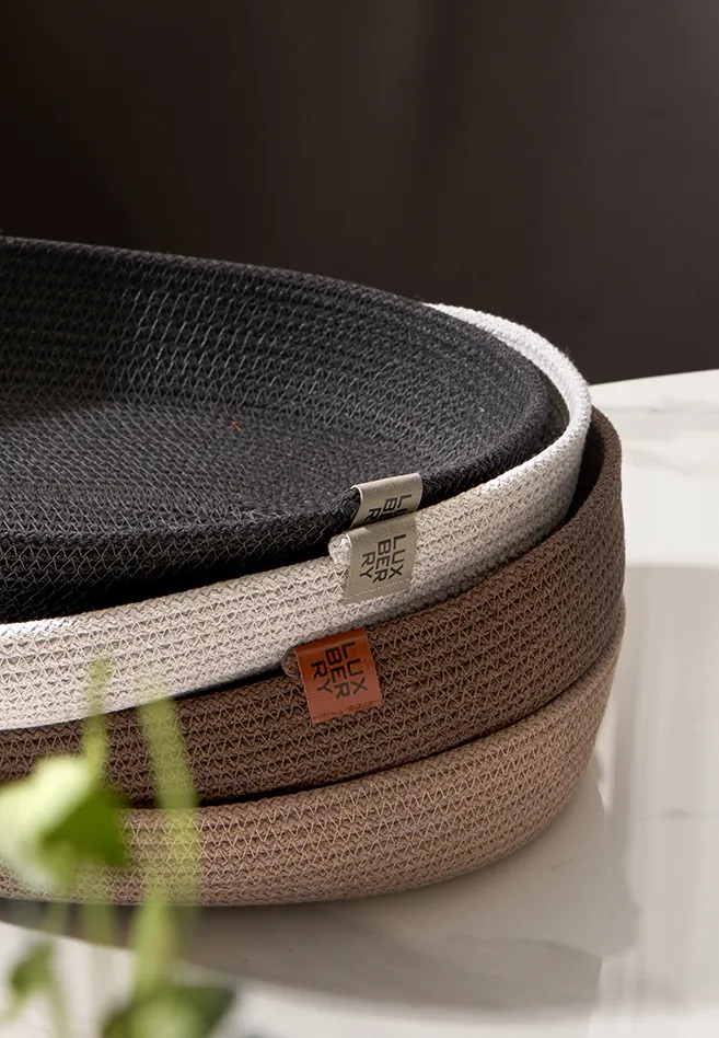 В коллекции декоративных корзиночек BOHO четыре трендовых цвета: графит, серый, шоколадный, какао.