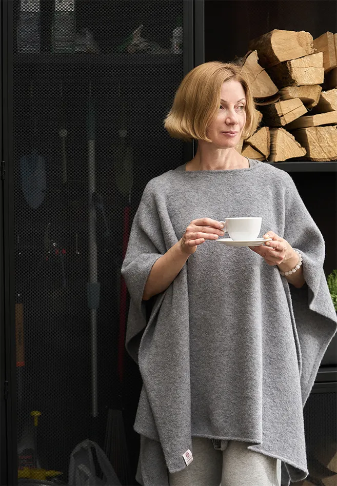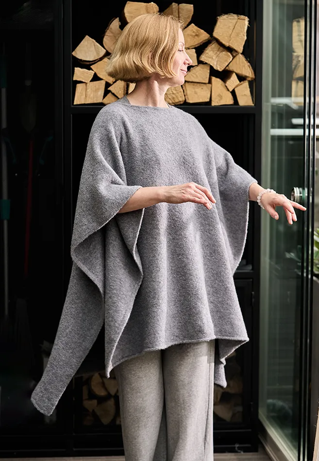 Вы себя будете прекрасно чувствовать в нем на прогулке в парке, на террасе или даже дома, когда хочется закутаться во что-то очень мягкое и уютное.