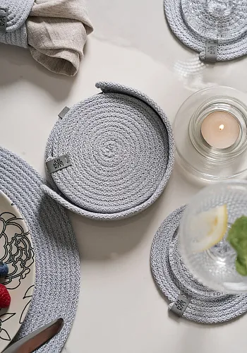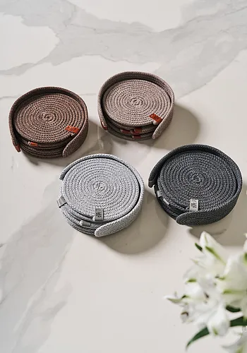 Набор подставок для чашек и бокалов BOHO, 6 шт., d 12 см.,100% хлопок, шнур,...