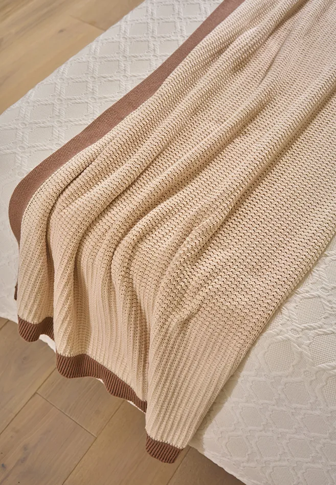 Элегантная коллекция хлопковых пледов : LOUNGE!В коллекции два цвета мусс мокко с льняным кантом и наоборот: льняной с кантом мусс мокко.