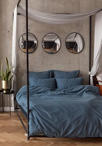 Простыня прямая, софт сатин, индиго